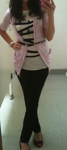 I snapped a few pics of my outfit today. I started with peep toes heels this morning but decided to switch to flats. What can I say, I like to be comfortable. :)